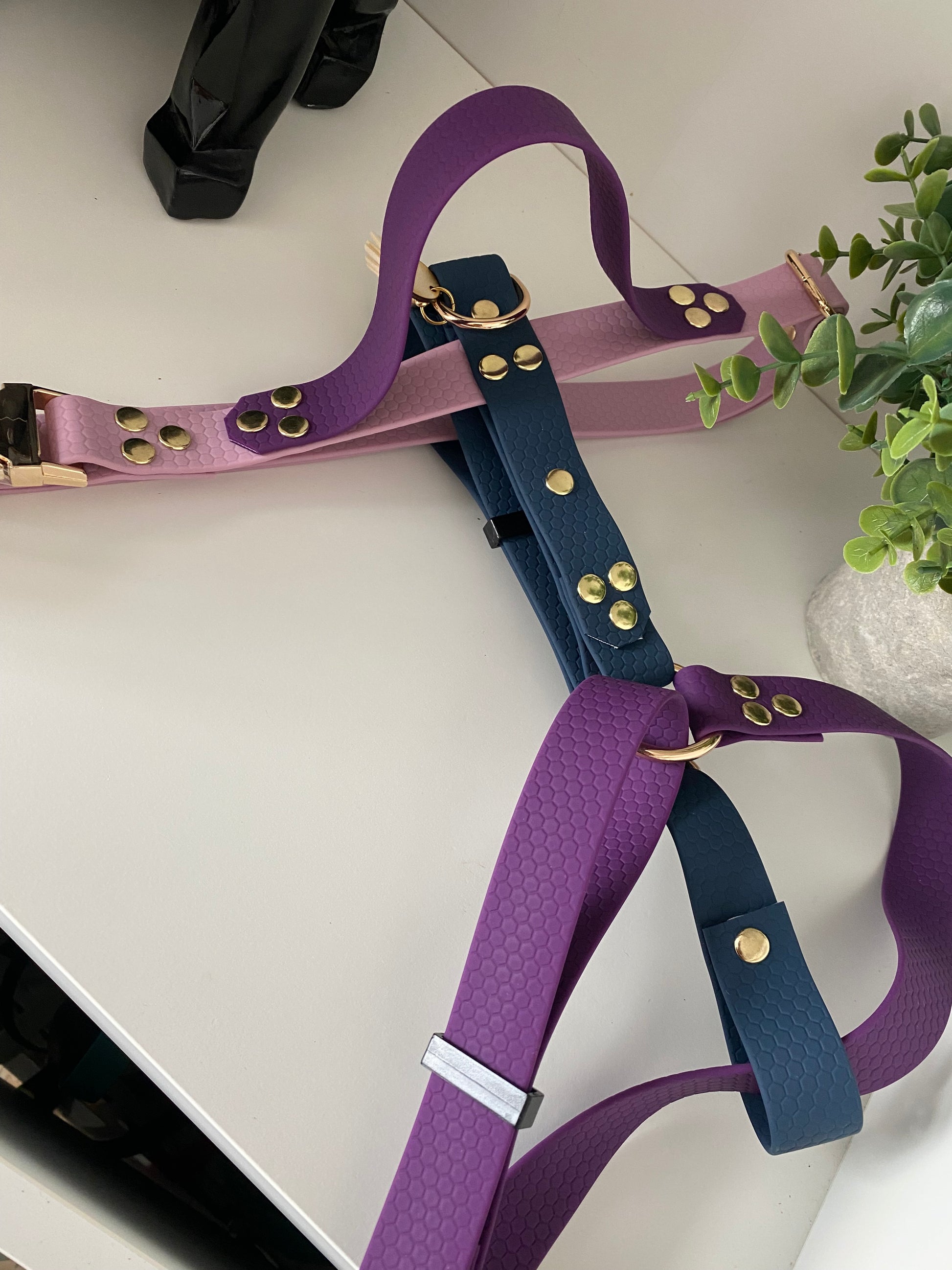 Harnais en H ajustable et imperméable pour chien marine, parme et violet