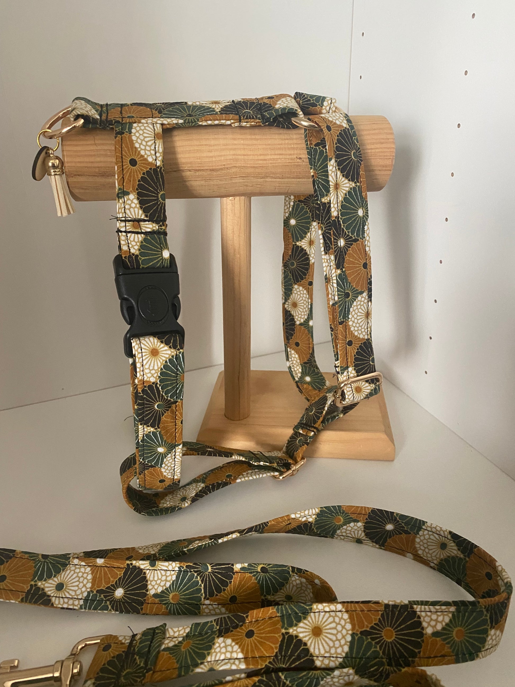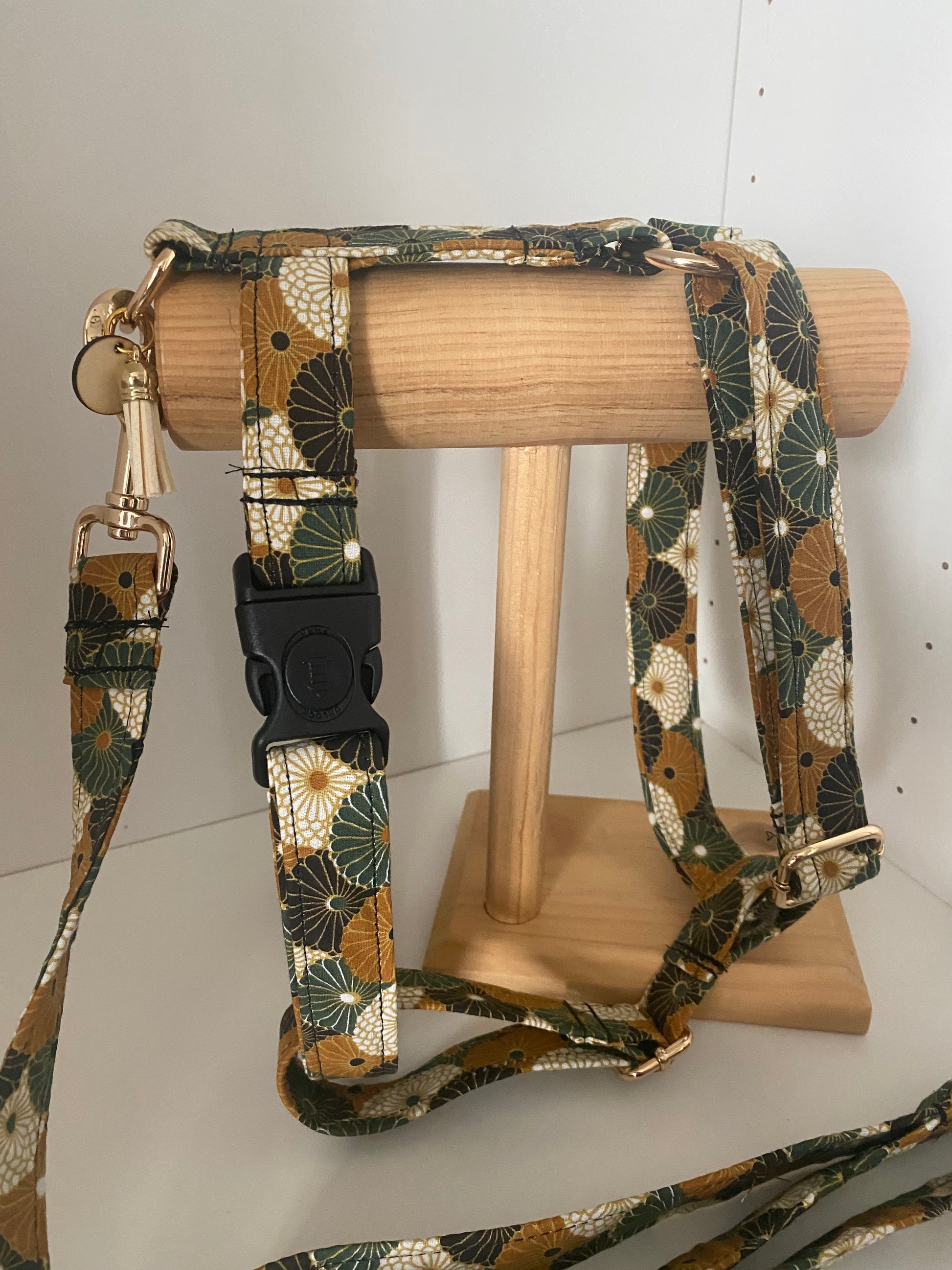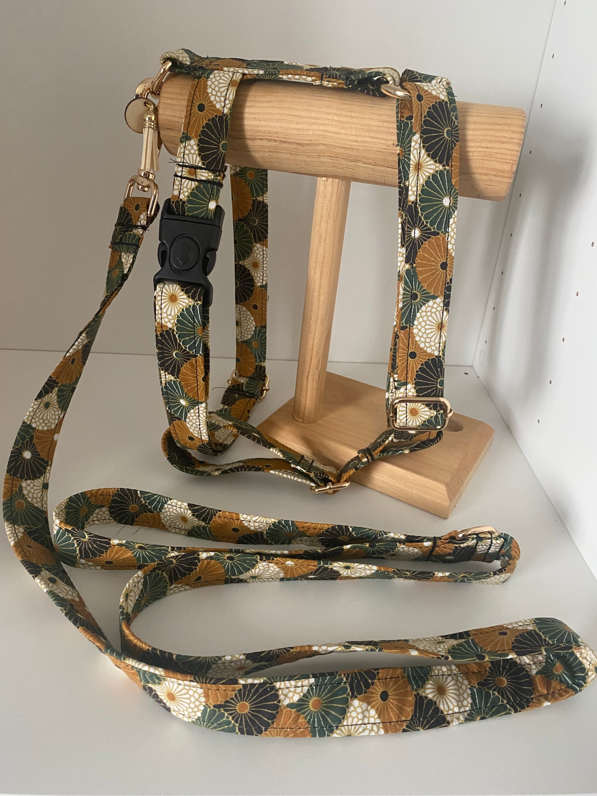 Harnais en H réglable collection moutarde et vert